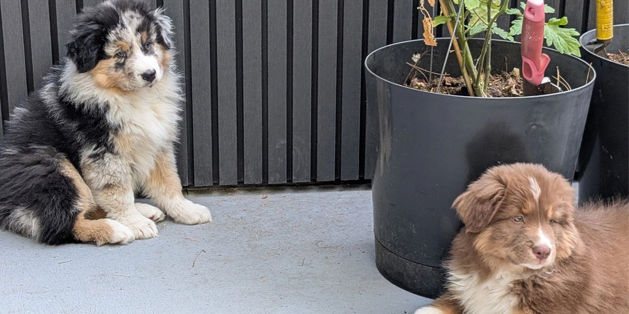 The pups will be available to go home July 1st when they are 10 weeks old.
